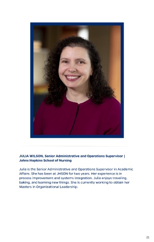 JULIA WILSON, Senior Administrative and Operations Supervisor |
