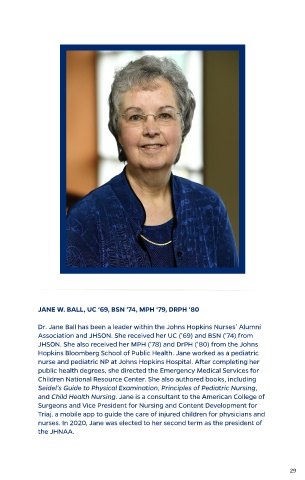 Dr. Jane Ball has been a leader within the Johns Hopkins Nurses’ Alumni