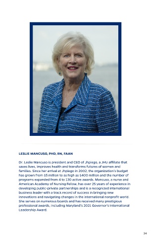 Dr. Leslie Mancuso is president and CEO of Jhpiego, a JHU affiliate that